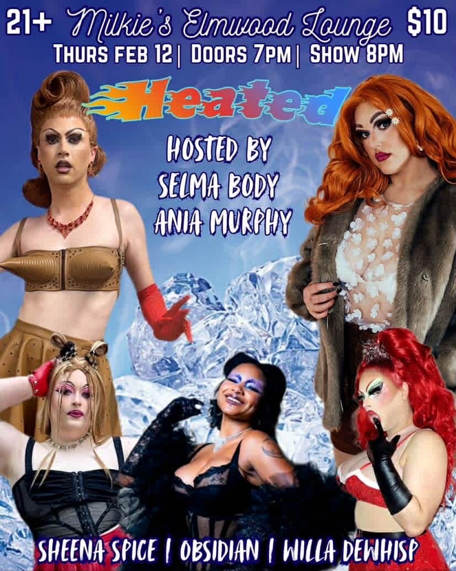 Heated Drag Show Hosted by Selma Body & Annia Murphy Featuring performances by Sheena Spice, Obsidian and Willa Dewhisp