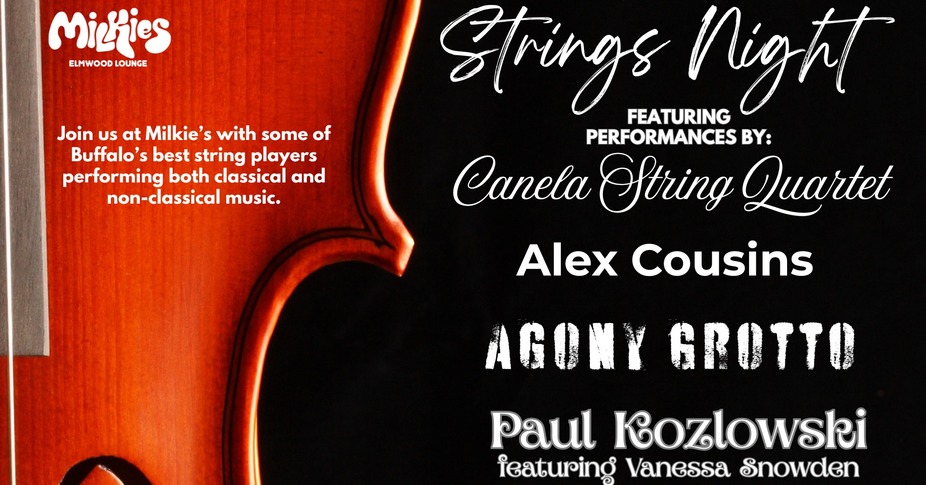 A night of classical stringed instruments with amazing performances by Canela String Quartet, Alex Cousins, Paul Kozlowski (featuring Vanessa Snowden), Agony Grotto