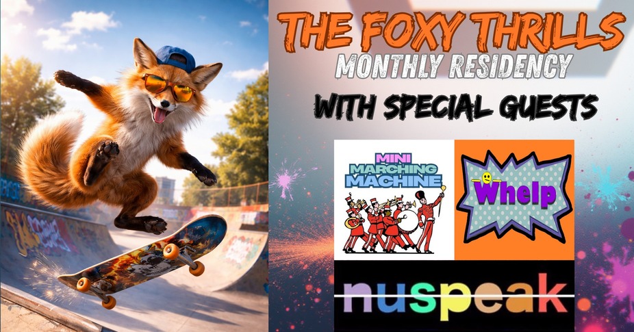 Our next night in the Foxy Thrills monthly burlesque performances on the first Friday of every month. With special guests Nuspeak, Mini Marching Machine, and Whelp!